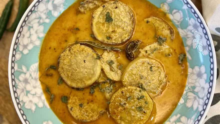 This yoghurt-based curry shows a completely different way to enjoy lauki. In this Kashmiri dish, chunks of bottle gourd are simmered in a smooth yoghurt sauce flavoured with fennel powder, dry ginger, and bay leaves. There’s no garlic or onion, which gives the dish a light and clean taste. The gravy is slightly tangy and aromatic, perfect for pairing with hot rice. Yakhni is known for its calming qualities, often served during summers or after heavy meals. This dish shows how even the simplest ingredients can feel refined when cooked with care. It’s subtle, soothing, and deeply satisfying.
