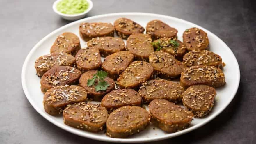 This popular Gujarati dish turns lauki into a tasty steamed snack. Grated bottle gourd is mixed with wheat flour, besan, ginger, green chilli, and basic spices to form a soft dough. It’s shaped into logs, steamed until firm, then sliced and sautéed with mustard seeds, sesame seeds, and curry leaves. The result is slightly crisp on the outside and soft inside. Muthias are often eaten for breakfast or as a teatime snack. They go well with green chutney or sweet lemon pickle. It’s a clever way to use up extra lauki, and it tastes better than you might expect.