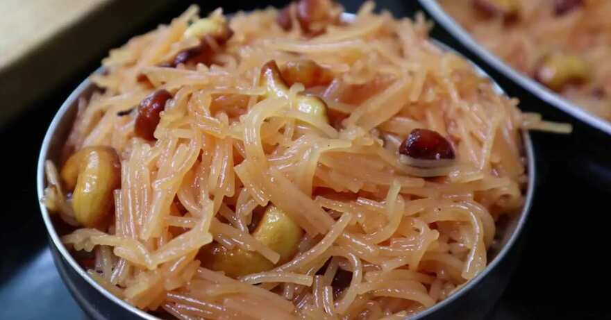 An underrated sweet preparation that is based on sweetening strands of roasted vermicelli in ghee, the kesari is another version of the classic semolina preparation. While some preparations prefer to cook the vermicelli in sugar syrup or jaggery syrup, other versions also include milk to enrich the dish. Texturally different than the grainy rava kesari, the semiya has a slight chew similar to that of cooked pasta. Authentic flavours include adding cardamom and saffron, as well as a pinch of orange food colouring to give it a vibrant appearance.