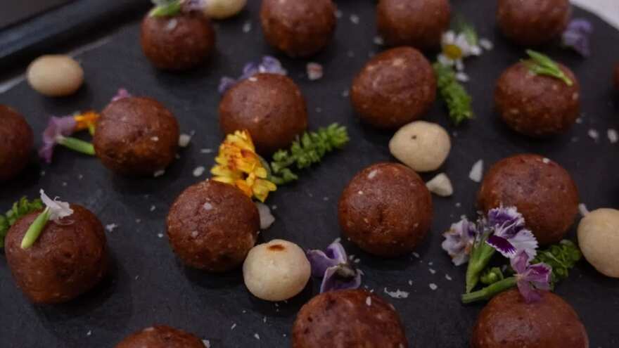 - Take it out into a bowl. Mix in the prepared crunchy macadamia to it and shape small portions into laddoos.