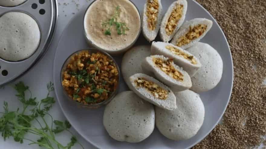 Paneer Stuffed Idlis