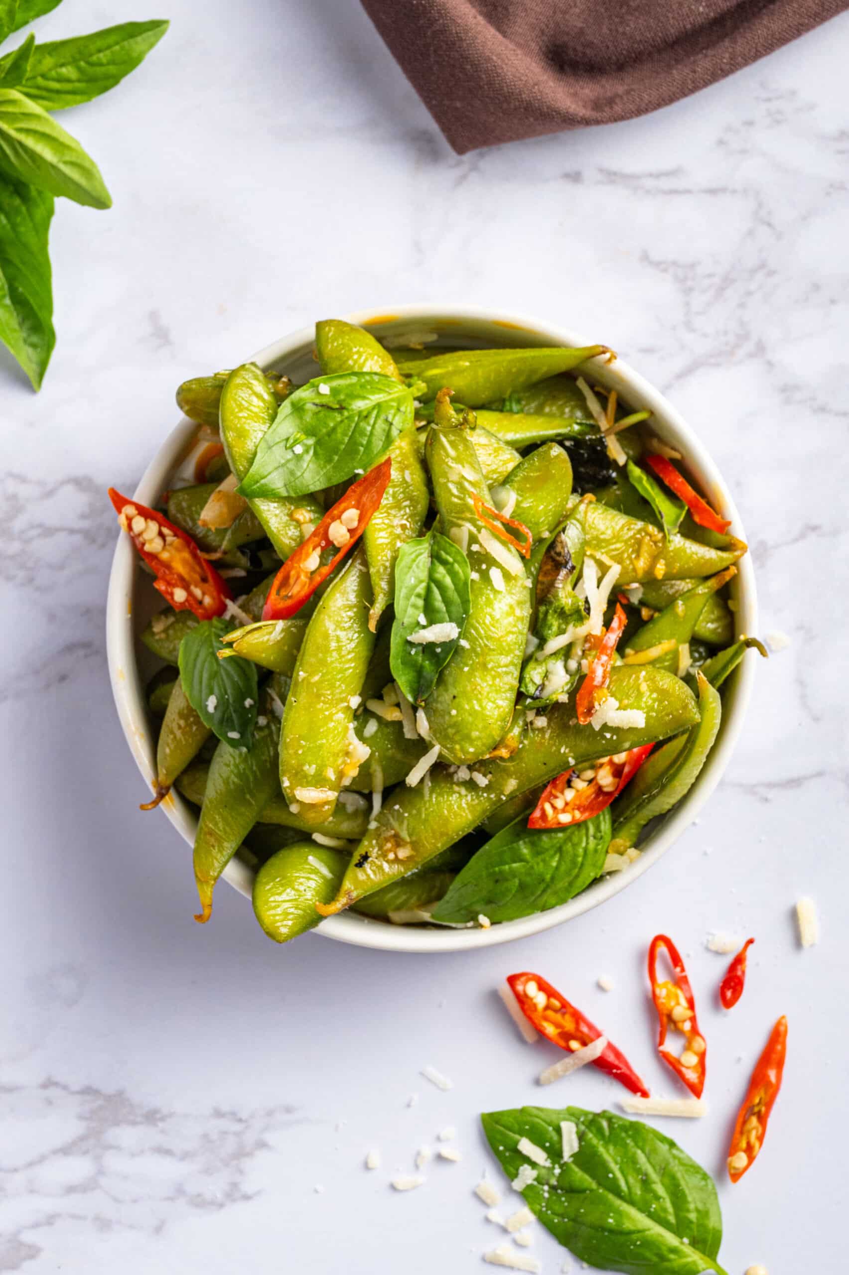 2 cups edamame pods 1 tbsp salt 1 tsp chilli flakes (optional)