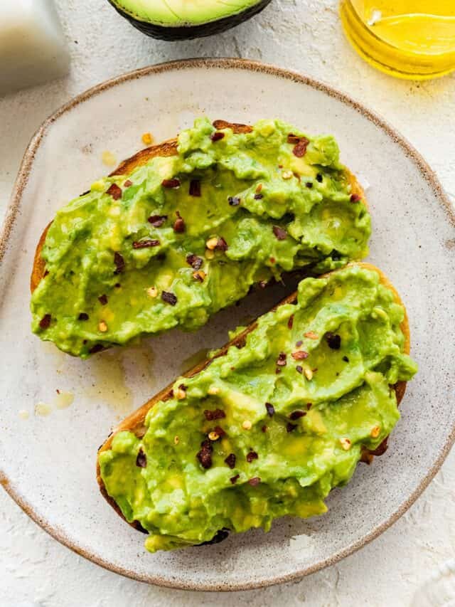 2 slices bread (toasted) 1 ripe avocado (peeled and mashed) Juice of ½ lemon Salt to taste Black pepper to taste Chilli flakes (optional) Fresh coriander or parsley (for garnish)
