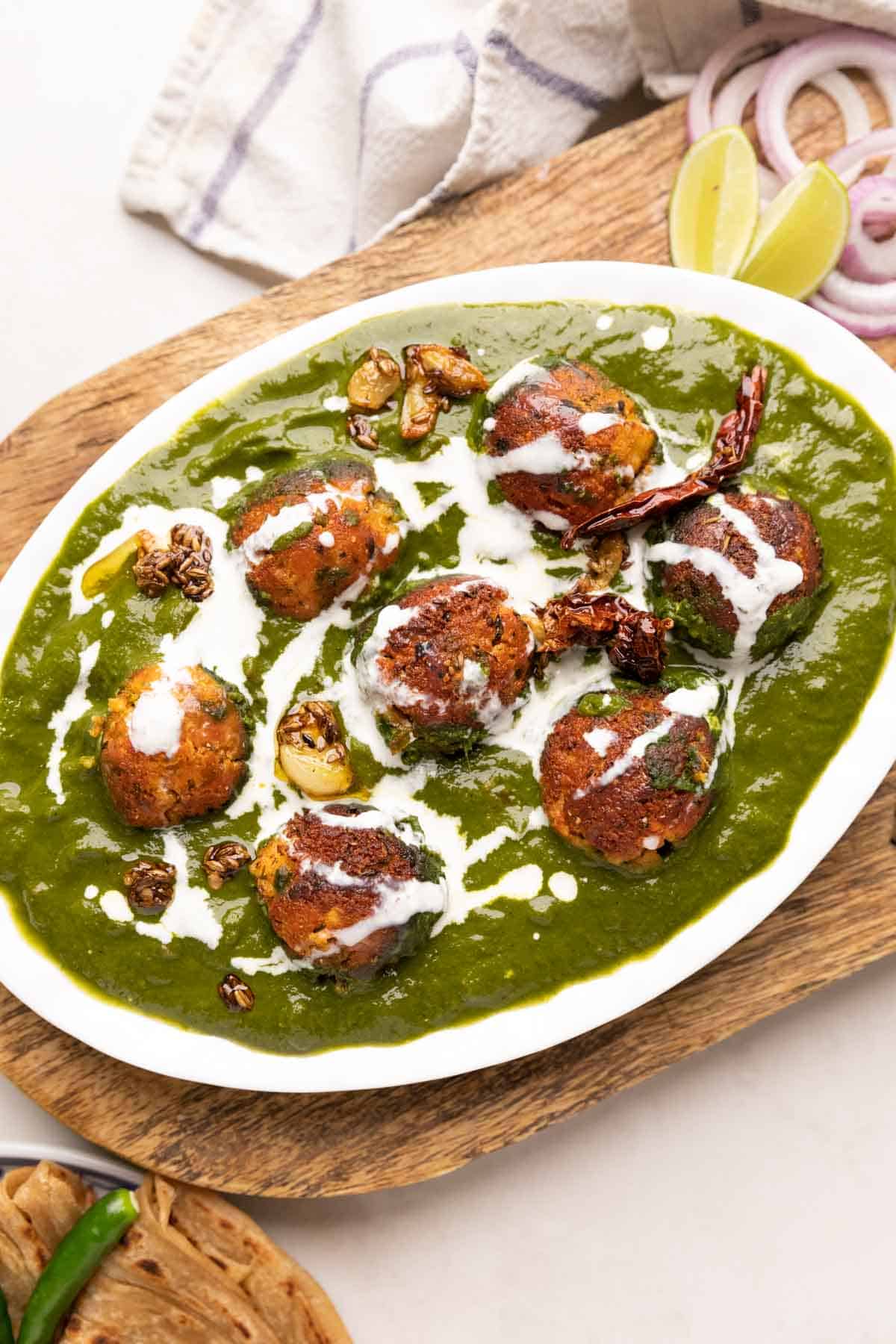 Spinach kofta curry is a rich and creamy dish made with soft spinach dumplings in a spiced tomato gravy. It tastes restaurant-style yet is simple to make at home.
