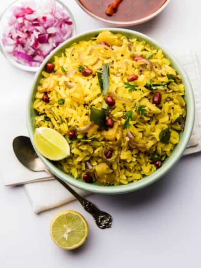 Tarri Poha is a popular Nagpur-style breakfast dish, loved for its spicy, tangy flavours. Unlike regular poha, it is served with a thin, spicy black gram curry called tarri poured on top, along with garnishes like farsan, onions, and lemon. This gives it a unique street-style taste and