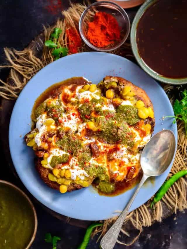 3 boiled potatoes (cubed and fried) 2 tbsp green chutney 2 tbsp tamarind chutney ½ tsp chaat masala Salt to taste Fresh coriander leaves
