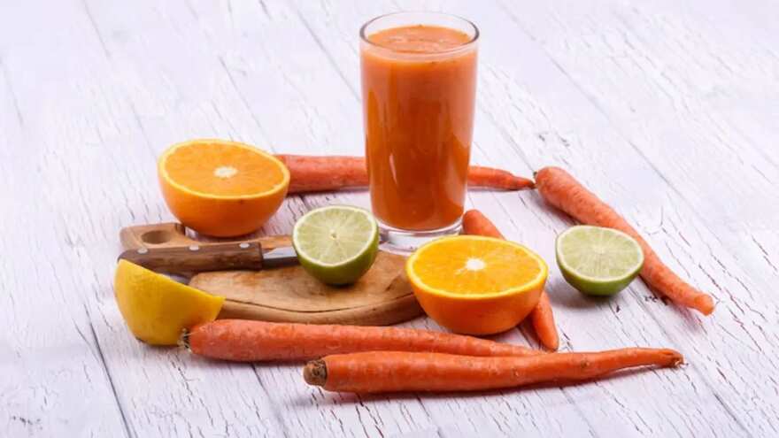 Carrots are full of beta-carotene for healthy skin and eyes, oranges boost vitamin C levels, and ginger helps digestion and gives a gentle kick to wake you up. This juice is ideal for winter mornings when immunity needs a boost. To make this, peel and chop two medium carrots, juice two oranges, and add them to a blender with a small piece of peeled ginger. Blend everything together and strain into a glass. Serve this juice fresh for the best flavour and benefits.