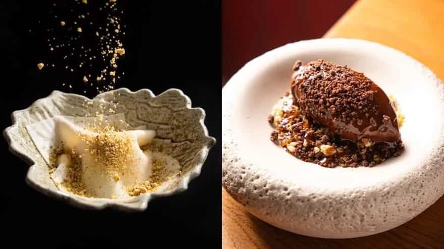 The dining options are split into two: one curated tasting menu, served at the omakase bar with front row seats to the wood-fired grill as it crackles away. And a second a la carte menu with larger portions built to share.
