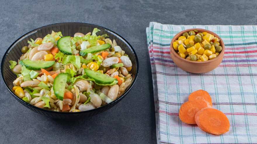 Salads are healthy, and there's no doubt about it. In a bowl, mix peanut butter, lime juice, rice vinegar, palm sugar, soy sauce (or coconut aminos), grated turmeric, and crushed garlic for this refreshing cucumber salad. Water can be added to adjust dressing thickness. Next, mix thinly sliced cucumber, julienned carrot, and red onion in a large bowl. Toss vegetables in dressing to coat. For garnish, add roasted peanuts, fresh coriander, and mint. Let the salad chill for 10–15 minutes to blend flavours before serving.