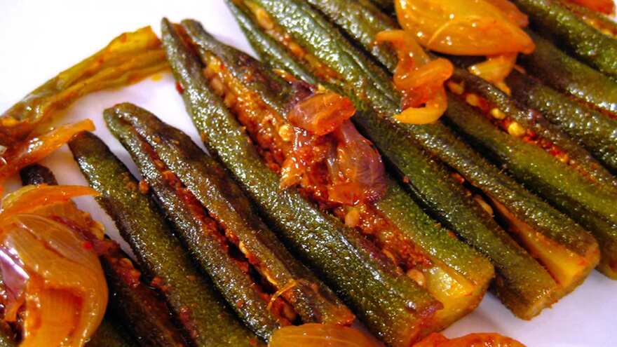 Okra (bhindi) cooked with roasted peanuts and spices is called Cheena Badam Bhendi in Bengali cuisine. The process is pretty simple as well. All you need to do is to dry roast peanuts until golden, then coarsely crush. Now you can fry sliced okra in oil until softened but intact. Save the fried okra aside. Splutter cumin seeds in more oil in the same pan. Just add salt, turmeric powder, and onions, and fry until softened. Now combine roasted peanuts, cumin powder, and hing. Stir in the fried okra without mashing it. Cook for a few minutes to blend flavours. Use freshly chopped coriander leaves to garnish.