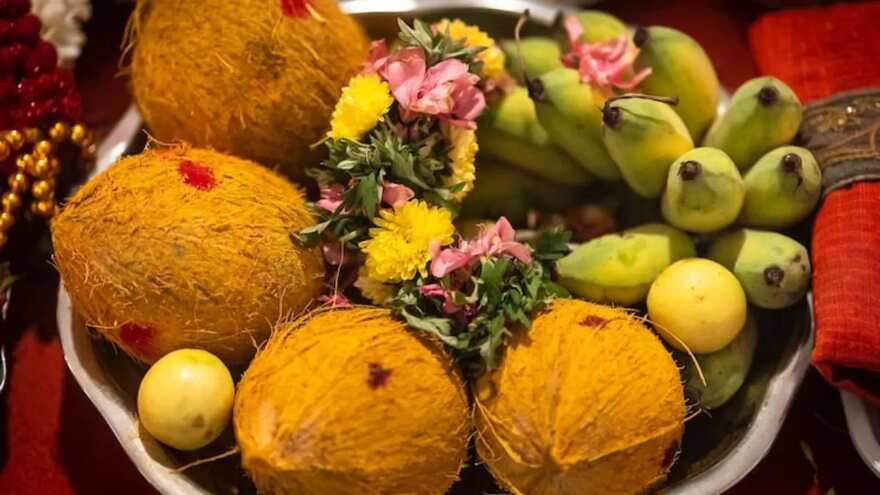 Simple offerings of fresh fruits and panchamrit are also prepared for Goddess Mahagauri. Fruits are chosen as they symbolise natural abundance and purity, while panchamrit, made with milk, curd, ghee, sugar, and honey, represents vitality and prosperity. Panchamrit is often used in abhishek before being distributed as prasad. Together, these offerings hold a special place in the rituals of Maha Ashtami and are prepared with care and devotion.
