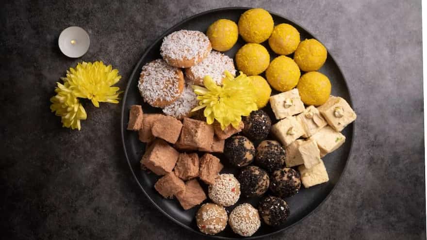 Sweets are central to Navratri, and a dessert board can be designed using fasting-friendly options. Ladoo made from makhana and jaggery, barfi prepared with coconut and dry fruits, and small portions of kheer made with samak rice can all be presented in bite-sized servings. Seasonal fruits such as figs and dates can also be added to enhance natural sweetness. Small bowls of honey and gulkand can be offered as dips for fruits or nuts, creating a layered eating experience. Such a board works well when hosting friends after the evening garba and ensures that everyone ends on a celebratory note without straying from fasting rules.