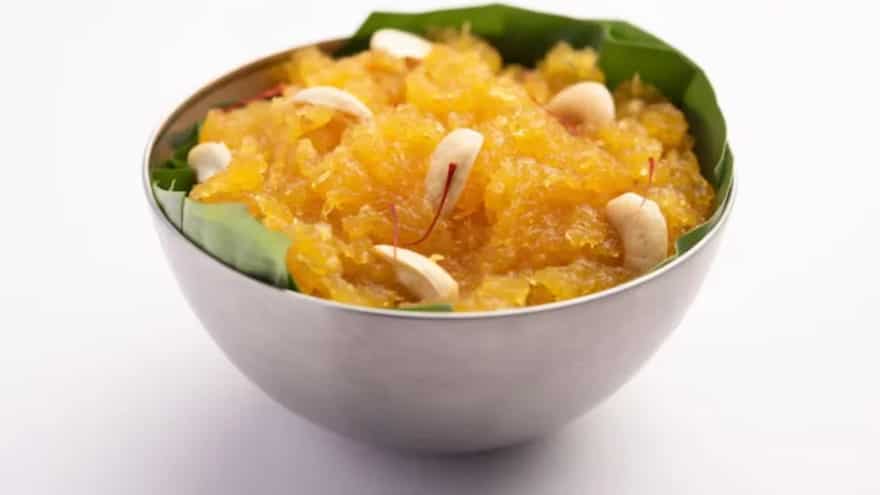 Lauki or bottle gourd kheer is a light, sattvic dessert that is often included in the Navratri menus. Instead of the regular sugar, use a small amount of stevia or jaggery to keep it low in calories. The grated lauki absorbs the milk, while cardamom and saffron give warmth and fragrance to the kheer. Its mild flavour and creamy texture make it a soothing and wholesome dish for bhog. This kheer is ideal for those who are looking for a healthier sweet version, while still keeping the traditional Ashtami offerings intact.