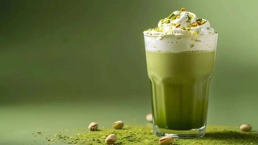 Matcha Pistachio Milk Cooler With Saffron Honey