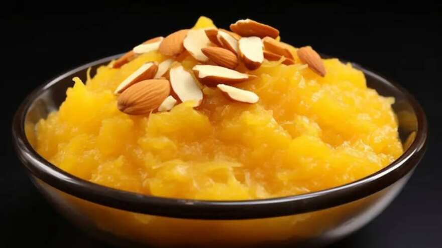 Pumpkin halwa remains a popular dessert, particularly in North Indian households during festivals like Diwali. Grated pumpkin is sautéed in ghee and cooked slowly with milk, sugar, and cardamom until it forms a dense and aromatic halwa. Cashews and raisins are added for texture. This preparation highlights the natural sweetness of pumpkin and its ability to absorb dairy and spice flavours. The dessert can be made richer with khoya or kept light by using less ghee and sugar. Pumpkin halwa demonstrates how the vegetable shifts easily into the dessert category without overpowering the dish.