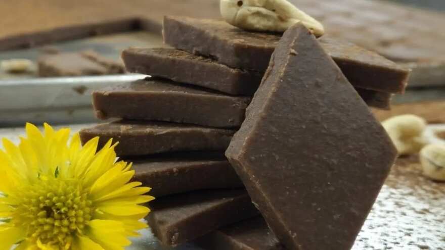 - Transfer the mixture to a flat surface, lined with parchment paper and wait until it is just lukewarm.