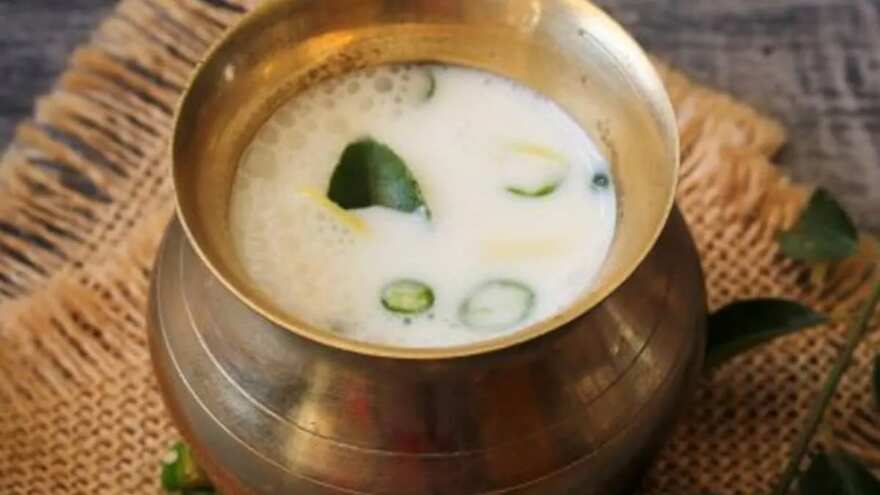 Mix gently. Use clean, non-reactive vessels and do not over-whisk. Serve in small portions as prasad. Many households refrigerate briefly before offering. Consume within hours because dairy begins to sour.